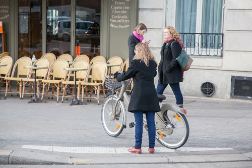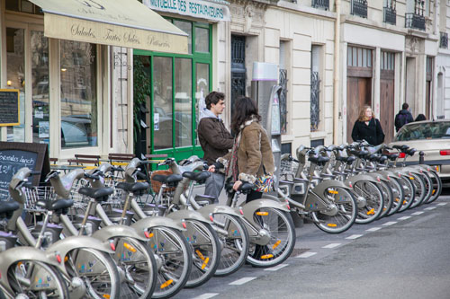 パリ市内中300mおきに ステーションが置かれている 「Vélib'」(ヴェリブ)という レンタサイクルシステムができてからは パリの自転車人口はどんどん増えてます。