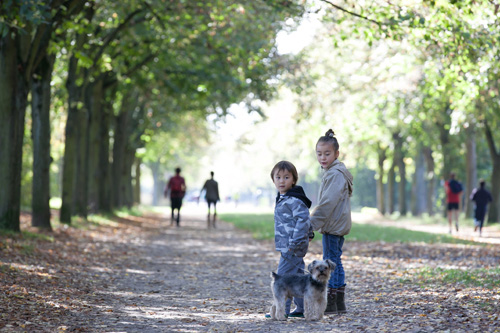 10m離れたって、ものすごい水圧で 水しぶきを浴びる上、 さらにゴミをまき散らしてるんだからね。 ボクたちイヌが落とした「落とし物」ながら、 あの勢いの水でまき散らされた 「落とし物」がかかって来ると思うと、 さすがにイヌのボクも 「やめてくれ〜!」。 まりこちゃんと一緒に、 できるだけ遠くへ逃げるんだ。