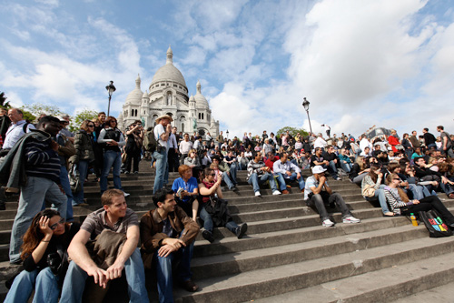 ▲パリの観光名所のひとつ、サクレクール寺院。 たくさんの人が座っているすぐその横でも‥‥、