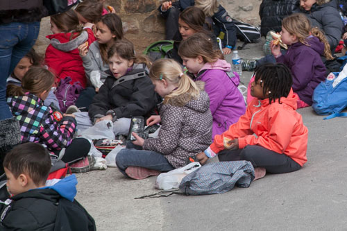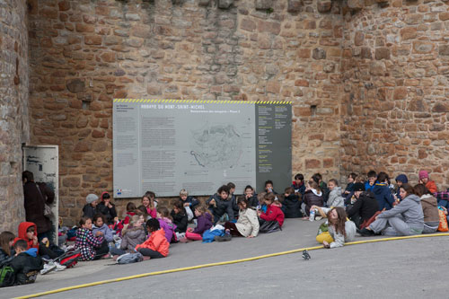 去年モンサンミッシェルで 出会った遠足グループも、 世界遺産モンサンミッシェルの ふもとのアスファルトの上で座り込んでいたし。