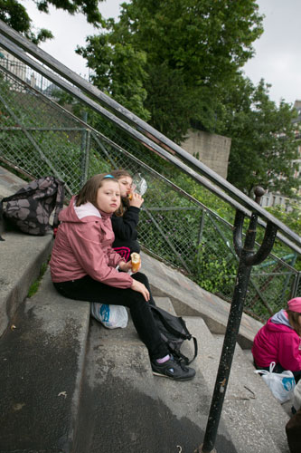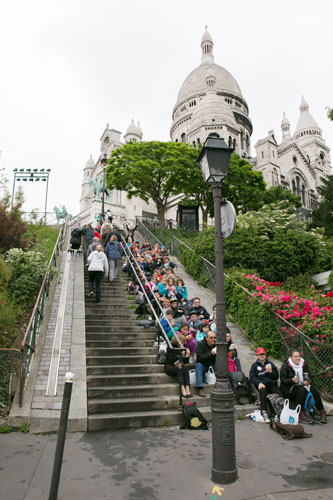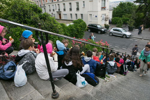 そういえば、この間 糸井さん達がパリに遊びに来た時も。 パリの観光地、モンマルトルの丘の サクレクール寺院横の階段に ずらっと座ってサンドイッチをかじる 遠足集団と出会ったよ。