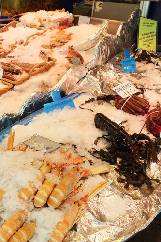 マルシェ(市場)の品揃えも 魚屋さんの店先は海老やカニよりも