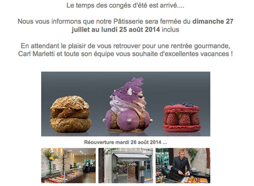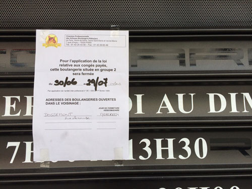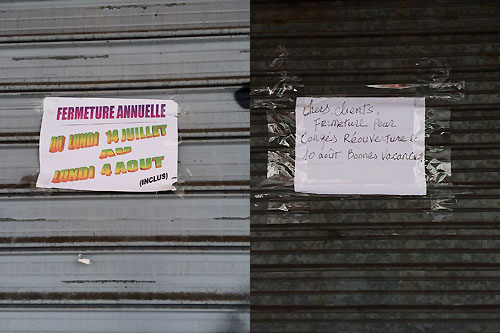 かなりたくさんの商店のシャッターが閉められ、 「夏のバカンスに行ってきますよ〜。 みたいな張り紙が貼ってある。