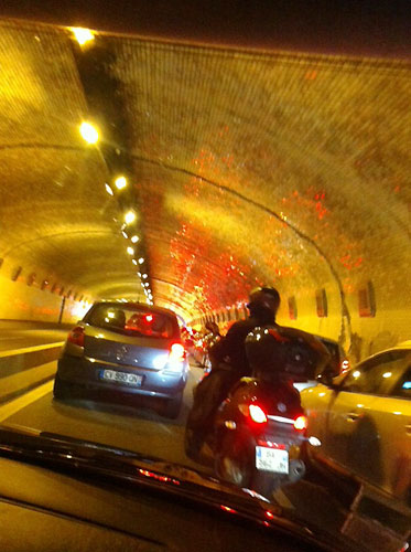 トンネルの中で前を走る車。 そんな〜ことは当たり前。 だからね。