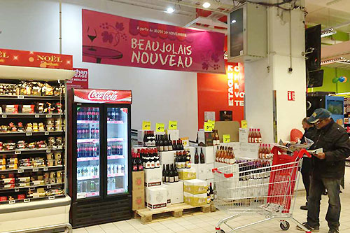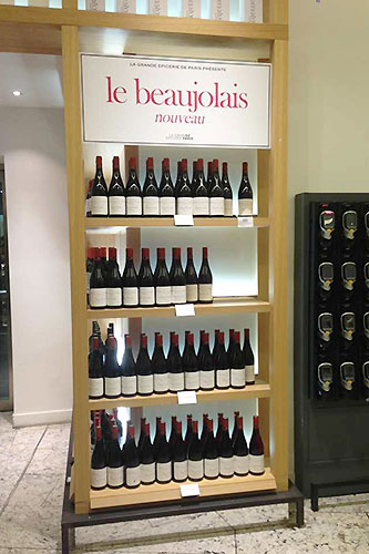 今回は、日本に滞在中だったので、 代わりにパリの友人に 「ボジョレー・ヌーボー」具合を デパートやスーパーに チェックしに行ってもらいました。