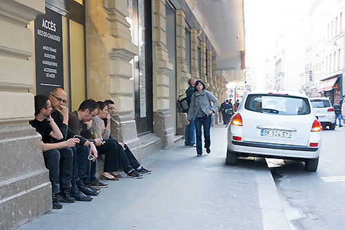 こちらはパリ市内の大きなデパート前。 デパートの外にずらりと座り込んで タバコ吸ったりおしゃべりしているのも、 こちらのデパートの店員さんたち。