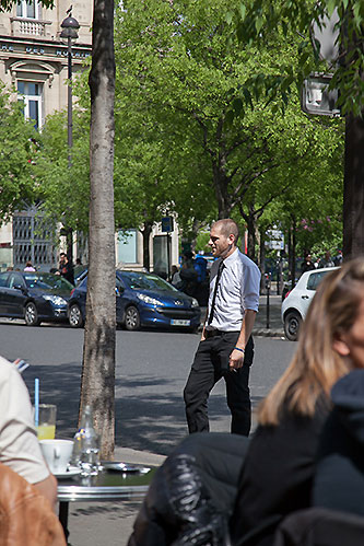 ちなみにこの場合、 お客さんがいなくて暇だからって 休憩しているわけじゃ〜ないですからね♪ 「すみませ〜ん」って呼びたくたって、 そんなタバコ休憩中の彼のことは 客側ががまんして待たなくちゃいけない。 気づいてもらうまで待つ。 ってのがおフランスのルールなのだ。