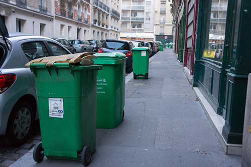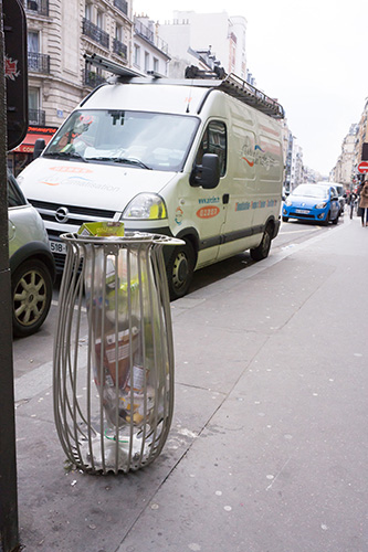 人が手を使って、 そしてその空のゴミ箱を道に放置しておくと、 ちなみに、パリの町中、メトロの中