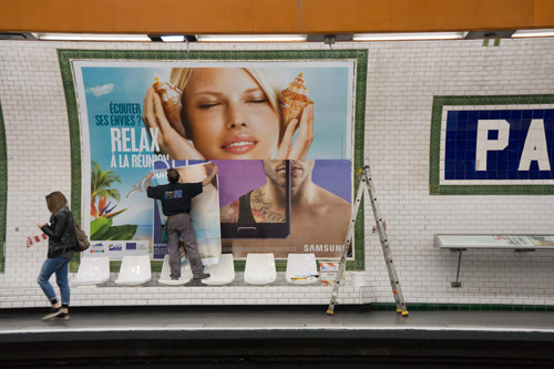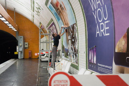 パリのメトロには、 いくつか広告スペースの サイズがありますが、 この最も巨大なタイプが いちばん定番でいちばんの迫力。