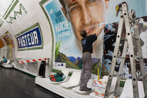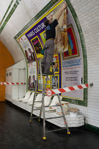 遭遇すると、ついつい立ち止まって じ〜っと見てしまう 広告貼り替えのムッシュー達。