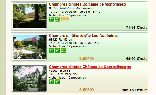▲シャンブルドット(フランス版B&B)のサイトのスクリーンショット 犬マークがついているところがペットOKということ。 こういうサイトにも必ずマークで記されている。