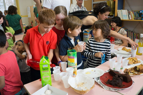 授業風景のビデオを見たり、 ジュースやお菓子で大祝賀会♪