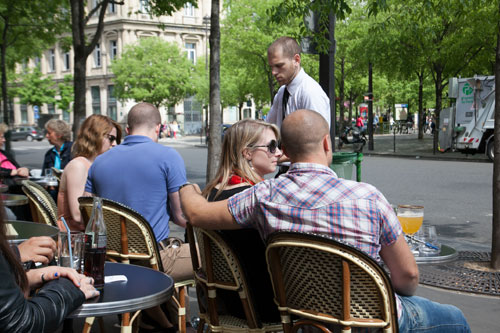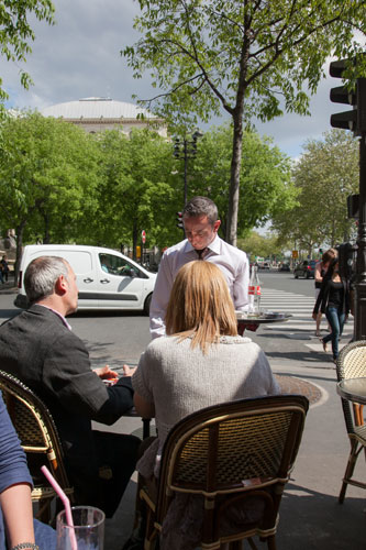 パリの街じゅうに点在するカフェの テラス席なんて、 基本的にぜ〜んぶ 外側を向いているじゃない? 通りに面して。