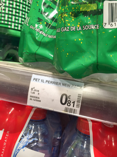同じところに1本のお値段と 6本1パックのお値段が 無造作に貼ってあるから、 ちょっと紛らわしいけれど、 「えっ、この水はこんなに高いの?!」 とかドキドキしてしまったりしなくて 大丈夫。