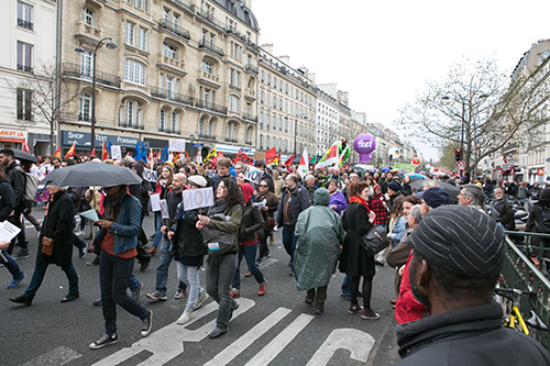 ちなみにこれは、 フランス政府が進めている 労働法の改正案に反対するためのデモ。 労働者の解雇などに関して 企業側の裁量を優先することや、 週35時間を超える超過労働に対しての手当を 削減することなどが盛り込まれているため、 失業率が高い若者も含め、 大反対のデモが行われているのです。