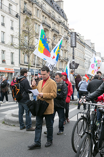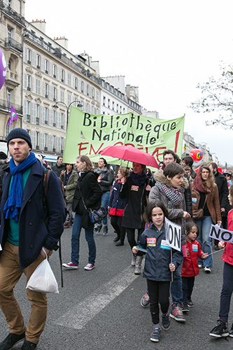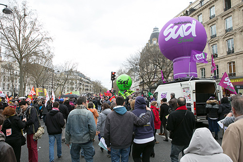 今日の写真は先週の土曜日のもの。 予定していた交通手段が完全に シャットアウトされていて、 遠回りしたあげくたどり着いたら 原因は今フランス全土で 盛り上がりまくっている、このデモでした。