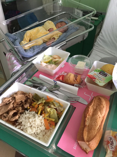 さて、つい先日、 パリの友人に赤ちゃんが産まれたので 病院に遊びに行ってきました。 ずいぶん長い間おしゃべりに夢中になって、 いつの間にか夕食が運ばれる時間に。