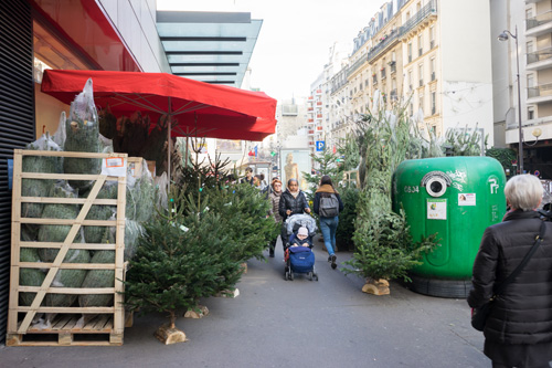 パリは街中どこを歩いていても クリスマスツリー用のもみの木だらけ。 学校帰りに子供と一緒に 大人の背よりも高いもみの木を抱えて 帰るお父さんの姿をよく見かける季節です♪