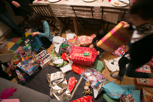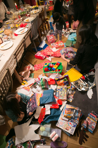 先週もちょっと話題にした この家族&親戚とのクリスマスの日。 そしてそのプレゼントたち。 思いっきりビリビリビリ〜!!!! 日本でやったら