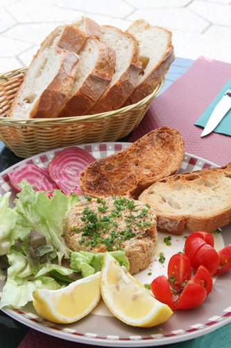 焼きなすやパプリカやズッキーニの 魚のリエット(パテのような感じ)サラダ。