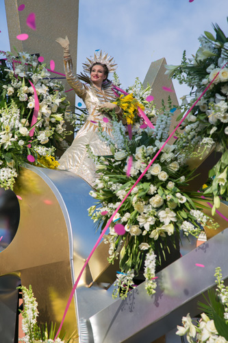 女王が乗る花車には3人。 今年選ばれた女王は18歳のSiam(シアム)さん。
