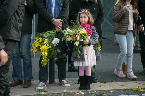 そしてパレードで練り歩きながら、 (だから「花合戦」という名前が 縁起もののこの「花パレード」のお花を 私もミモザやバラやガーベラの