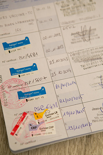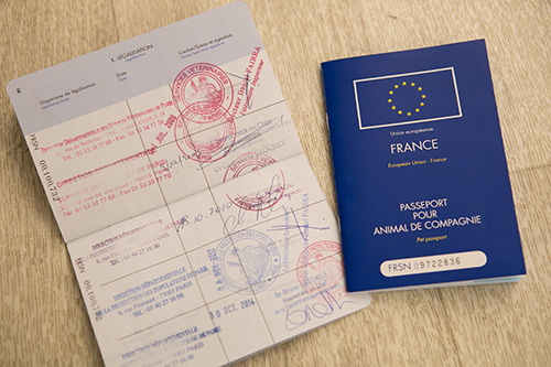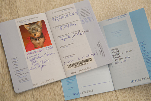 獣医さんに発行してもらう このEUパスポート。 世界を行き来した渡航記録が 記されていく人間のパスポートとは ちょっと違って、 ペットの健康手帳も兼ねたもの。