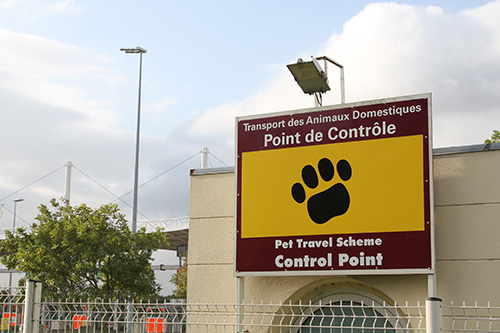 イギリスに旅立つ前、 イギリスから旅立つ前、 それぞれ獣医でのチェックをした証明を パスポートに書いてもらって 国境にある動物検疫に立ち寄ります。