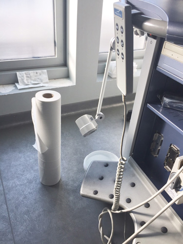 一緒に行くのが割と当たり前なので、 というわけで、 着替えスペースとか仕切りとかが 日本だと、あの足をガ〜ッと開く 産婦人科の診察って、