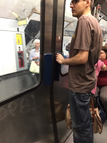 パリのメトロのドアで いちばんお馴染みのパターンが (いちばんパリらしいなと思うタイプ) 取っ手を手動であげて開けるタイプ。