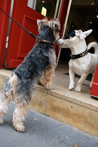 カフェもレストランもデパートも。 どこにでも一緒に出かけられるからね。 人にもイヌにも慣れているボクたち。 どこに行ってもビビることなく 誰にでもご挨拶できるのさ。
