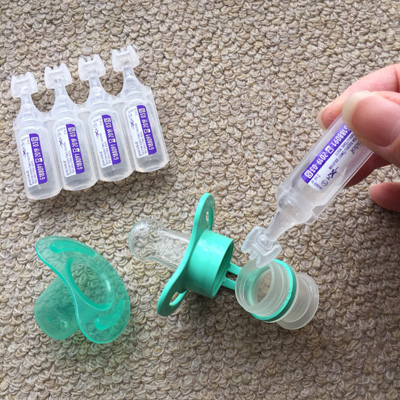 しかも! 麻酔パッチだけで余裕なのに、 さらに心配だったらこれも、と、 おしゃぶりの中に甘い液体のようなものを入れて ちゅぱちゅぱ吸うと気が紛れて 甘さで落ち着く‥‥、という秘密兵器まで 処方してくれたりするのです。