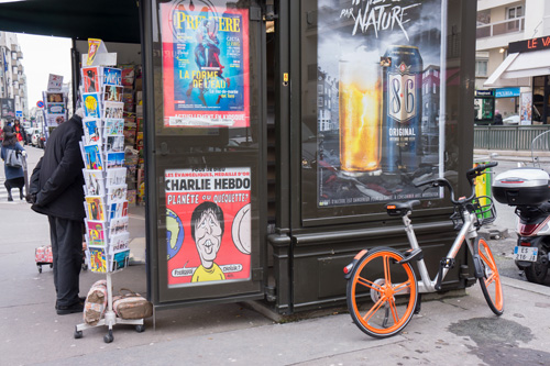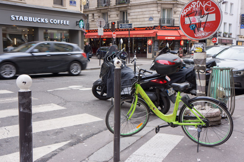 自由すぎるシェアリングサイクルの乗り捨て。 パリを歩く機会があったらぜひ観察してみてね!