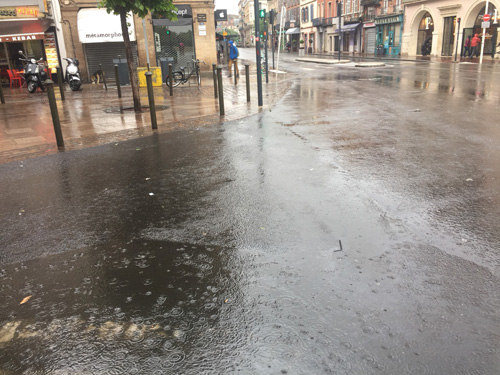 今年はサマータイムになって 「今年はなんでこんなに雨が多いの!」 「この最高であるはずの時期に雨ばかりなんて みたいな会話がとても多かったのだけど、 「学校に傘を持ってっちゃいけないルール、