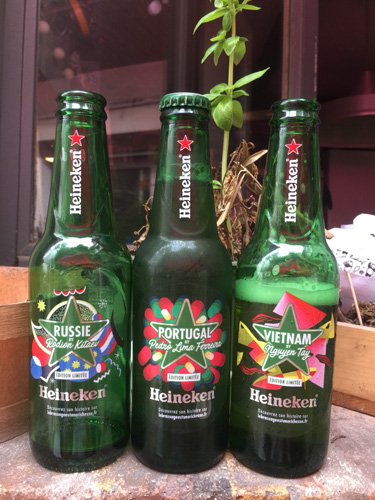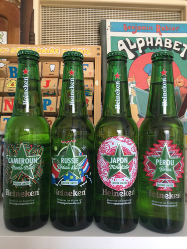 他にもワールドカップ限定モデルなんかもたくさん! 例えば、ハイネケンビールの瓶には 出場20カ国のデザインがほどこされた 特別バージョンが販売されているよ!