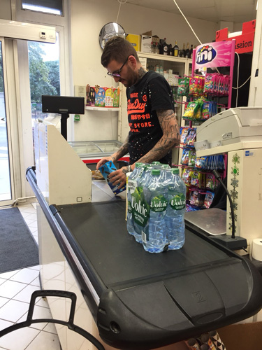 と、ベルトコンベアーに商品を乗せて その8。 とさらに驚いたのはレジのお兄さんのタトゥー。