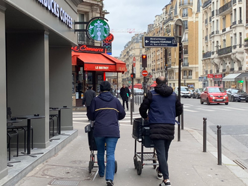 フランスの郵便局「ラ・ポスト」の人たち、 それぞれの基地から、 自分の担当エリアの郵便物を カートに入れて出かけます。