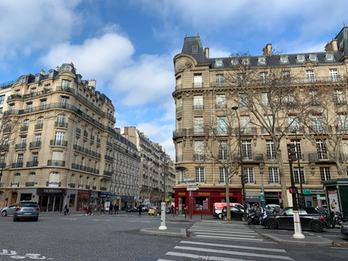 ▲少し遠くに見える緑の十字架マークが薬局のネオン。 パリの街並みにはこのくらいしかネオンの看板がありません。