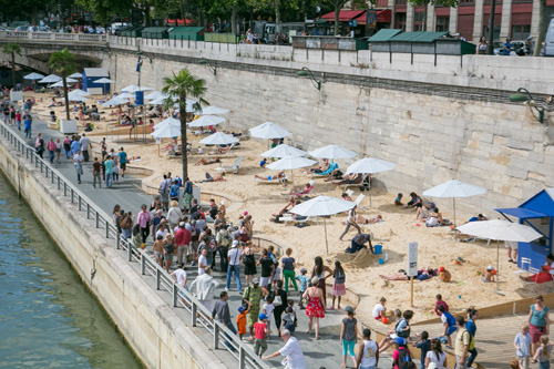 ▲夏になると登場するこの「パリプラージュ」のビーチを作るときに使われる砂と 同じ色と柔らかさのパリの砂場。
