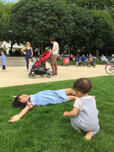 パリっ子は、太陽が出ていたら とりあえず芝生に座って、ピクニック。 芝生で寝転んで日焼けしたり本を読んだり。 芝生が大好きだからね。 ルールを守って清潔に保たないと。
