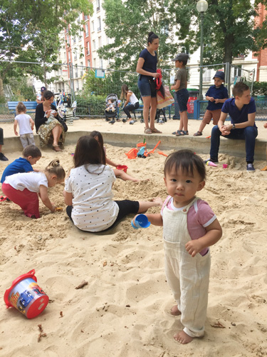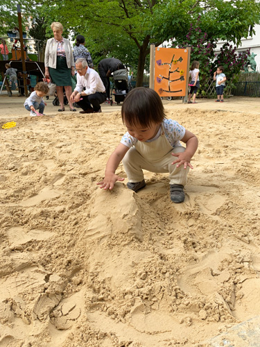 ずっと前のこのコラムで、 夏になると セーヌ川沿いの道路が通行止めになり、 ビーチが出現する、 「パリプラージュ」という イベントがあることを紹介しましたが、 まさにあの時に使われるような砂と同じ。 とっても心地いい砂で、 砂場で小さい子が遊んでいても安心です。