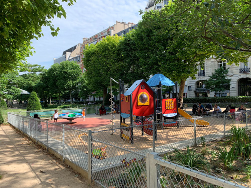 ▲公園の中の小さな子供遊具スペースはさらに柵で囲まれている。