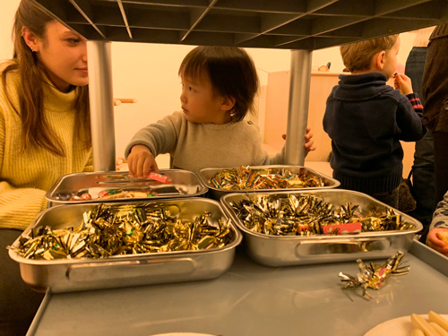 ▲保育園のクリスマスパーティーの時の写真。 先生がワゴンにお菓子を山盛り持ってきて子供たちは取り放題!