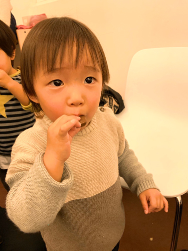 とどまるところを知らず どんどん手を伸ばす子供たち。 まだまだ半分赤ちゃんの子供たちのお腹に ショコラが消えていきます。