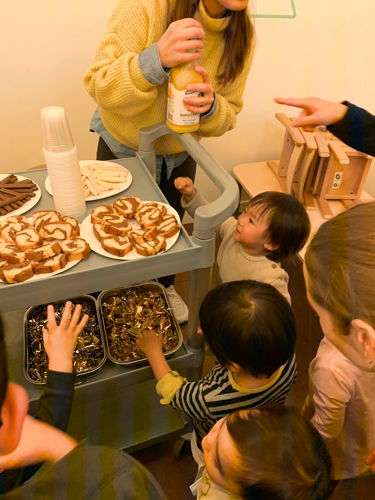 いつものおやつタイムとは違う、 特別なクリスマスパーティーとはいえ。 1歳、2歳、3歳の子達が ショコラ食べ放題です!
