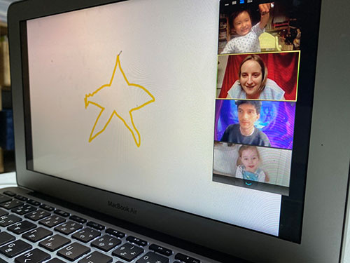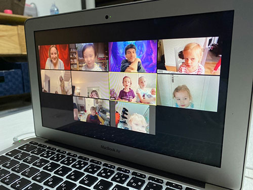 ▲久しぶりにみんなの顔をみれたzoomでの習い事。 子供達もお休みの間何をしていたか、何を食べたか、 なんのぬいぐるみがお気に入りなのか、などなど思いのままにおしゃべり。