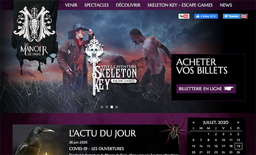 ▲パリにある本格的なお化け屋敷のホームページ。若者に大人気の超本格的なお化け屋敷で、 取材に行きたいものの、本気で怖そうでいけないでいます。 だからいつも若者友達からの話を聞くだけ‥‥。