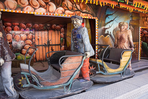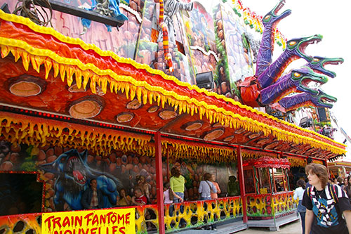▲フランスの遊園地(夏の間だけできる移動遊園地なども多い)でよく見かける 乗り物に乗るタイプのお化け屋敷。