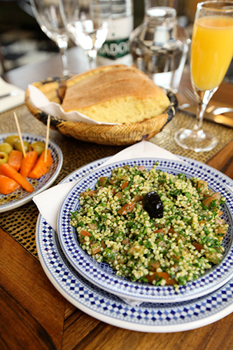 ▲モロッコ料理の前菜で登場した「タブレ」。 これから「クスクス」を食べるのに、さらに前菜にも 「タブレ」に「ブルグル」が混ざったサラダで腹持ちたっぷり!!