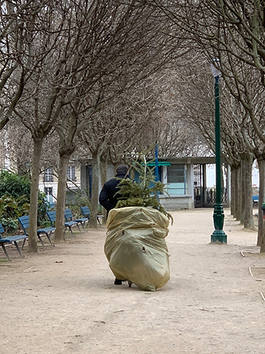昨日も、バカンス明けの登校初日。 子供たちが、 「ボクんちのサパン、ここにあるんだ〜。」 って悲しそうに鉄柵にしがみついていたり、 見送りのお父さんが 途中でもみの木を捨てる姿を見て、 幼稚園生が大泣きしたり、 やっぱりみんな悲しいよね‥‥。